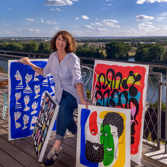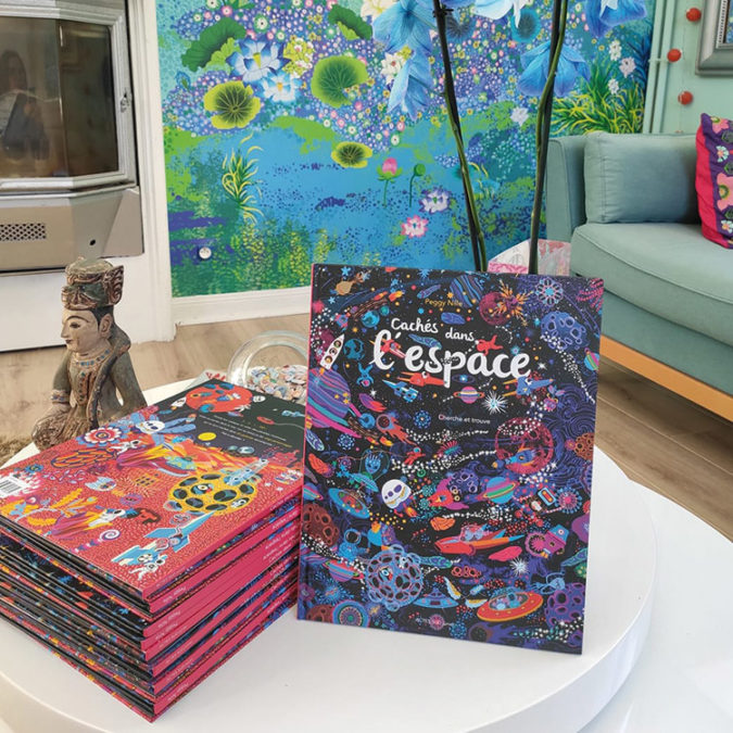 Je dessine chez moi, j’illustre des livres pour enfants, des papiers peints, des tissus, des affiches. J’ai grandi en banlieue, fille unique entourée de mes crayons pour dessiner…